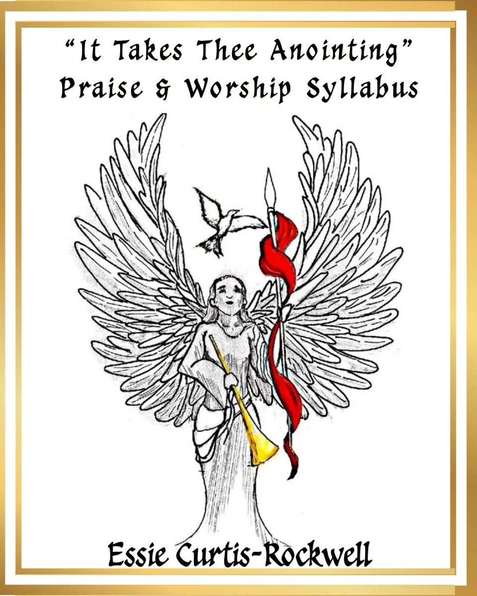 By Essie Curtis-Rockwell, teaches scriptures and techniques for Praise & Worship Leaders, Soloists, Choir Directors, Musicians, and Praise Dancers. The Syllabus has eight easy to read chapters and extra pages for your study notes and reflections.